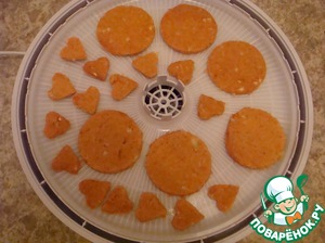 Сушить при температуре 45 градусов около 12 часов. Примерно через 6 часов нарезать подсушенную массу и продолжать сушить на решетке.