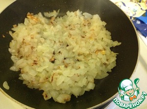 Репчатый лук мелко шинкуем и ставим обжариваться до золотистого цвета с 2 ст л оливкового масла.