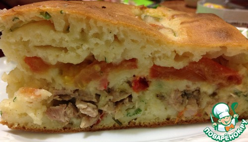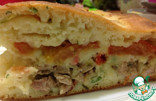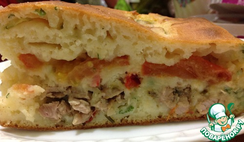 Вкусный, сочный пирог на кефире. Очень ароматный, мясной и сытный.