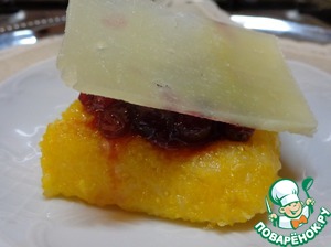 Рецепт «Тартинки из поленты с брусничным соусом и сыром»: