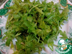 Выложить обжаренный сыр, чуть-чуть рукколы.