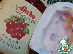 Йогурт смешиваем с соусом "Дикая брусника" от D`arbo и хорошо перемешиваем.