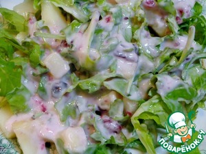Отличная закуска для любителей сыра. Готовится очень быстро, смотрится оригинально. По своей сути сочетает в себе и закуску, и салат под клюквенно-йогуртовым соусом.