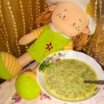 Вообще, хочу сказать, что раньше я особенно не задумывалась над тем, что ем. В моем меню было много жареного, соленого, сладкого, собственно, это не могло не отразиться на моей фигуре, но по-настоящему я задумалась над тем, что ем, когда дочь стала просить еду именно из моей тарелки или из тарелки папы. В этот момент стало понятно, что пора менять свой рацион. Суп-пюре я любила всегда, поэтому это блюдо прижилось у нас очень быстро, ведь его очень просто готовить. Наши продукты - кабачок, брокколи, порей и чеснок.