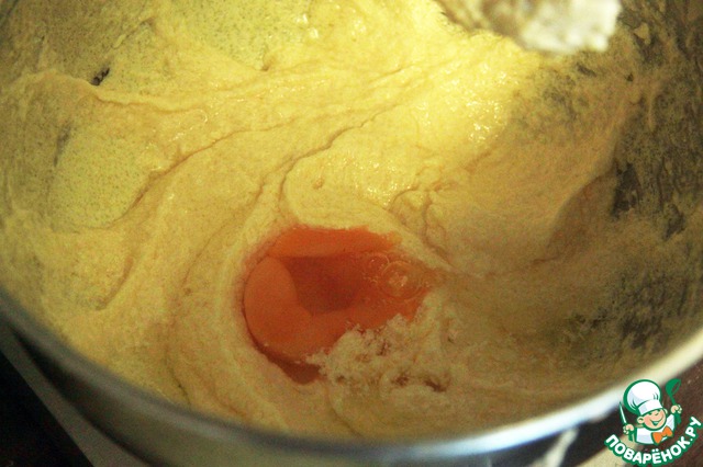 По одному вводите яйца, каждый раз перемешивая тесто.