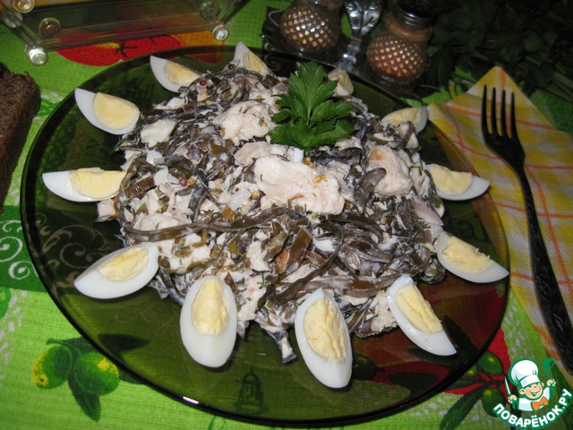 Салат из морской капусты, белой рыбы и перепелиных яиц