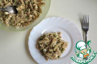 Соединить морскую капусту, яйца, рыбу. Заправить соусом и перемешать.