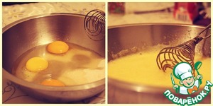 2. В отдельной миске взбейте яйца с сахаром в течение 3 минут, пока смесь не побелеет и не вспенится.