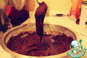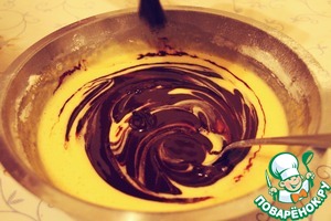 3. Добавьте в яичную смесь остывшую смесь масла с шоколадом.