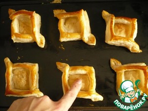 Смазать конвертики сырым желтком, а противень маслом. Выпекать в заранее разогретой духовке при 180 градусов до золотистого цвета. После того как остынут, серединку немного прижать - нам ведь надо побольше места для начинки!