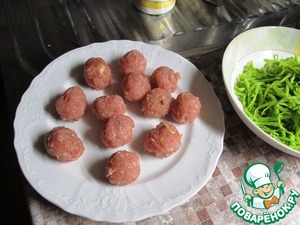 Из фарша, лука и специй сделать фрикадельки.
