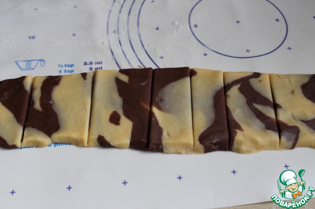 Печенюшки немного растеклись, разрезаем сразу еще теплыми.