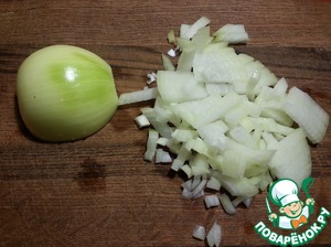 Лук нарезать мелкими кубиками. Обжарить на растительном масле до того момента, как он начинает румяниться.