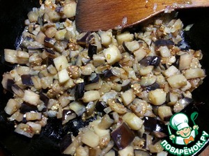 Добавить баклажаны. Обжарить до слегка румяной корочки.