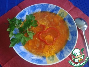Хочу сказать, что здоровое питание- это действительно легко!!! А гораздо приятнее, когда это еще быстро и вкусно! Доказательством моих слов служит такой простой супчик. Во-первых, в нем только овощные экстракты, богатые микроэлементами и витаминами. Луковые экстракты улучшают пищеварение, стимулируя перистальтику кишечника. Морковь- кладезь витамина А. Кто-то может сказать, что пользы от моркови, прошедшей через пережарку, больше, так как именно присутствие жиров способствуют лучшему усвоению витамина А. Но в данный супчик входит оливковое масло в достаточном количестве, богатое витаминами и полиненасыщенными жирными кислотами, источник молодости и красоты!!! Масло не обжаривалось, а следовательно оно сохранило все свои полезные качества! Во-вторых, макаронные изделия из твердых сортов пшеницы- также источник витаминов и минералов, но, кроме того, это клетчатка!!! Клетчатка способствует быстрому насыщению, улучшает пищеварение, борется с дисбиотическими процессами в кишечнике. Такие макаронные изделия вполне подходят для диетического питания!! В-третьих, помидоры и томатный сок помимо витаминов и элементов содержат мощный антиоксидант- ликопин- предотвращающий развитие онкозаболеваний!