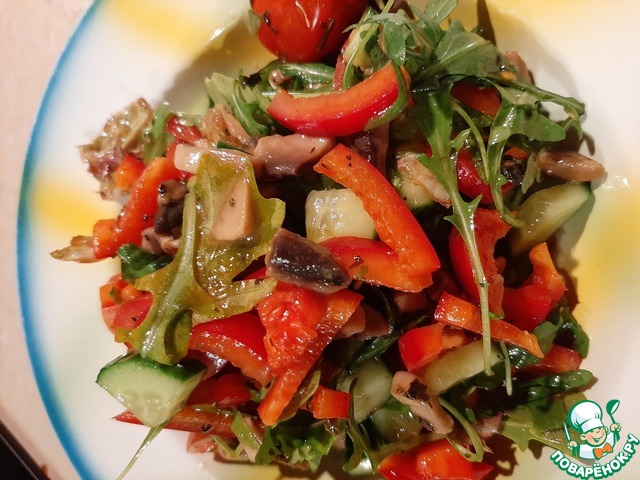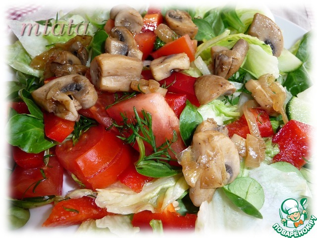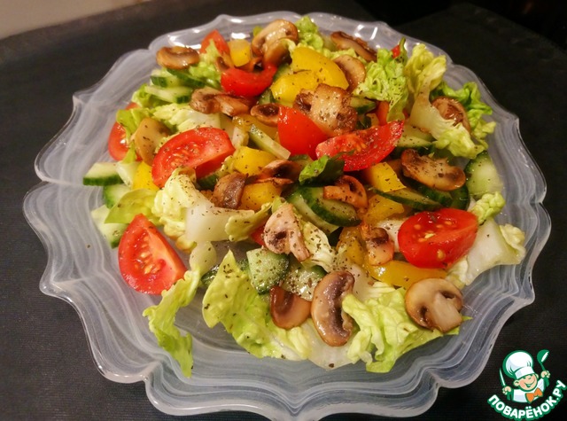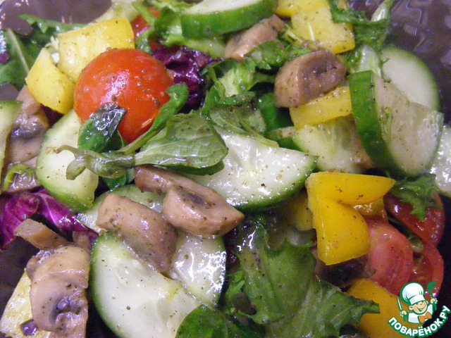 Рецепт «Овощной салат с зеленью и шампиньонами»: