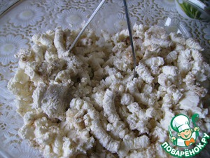Хорошо размешать творог с сахаром, солью, ванилином и корицей. Не делайте это блендером, получится паста творожная.