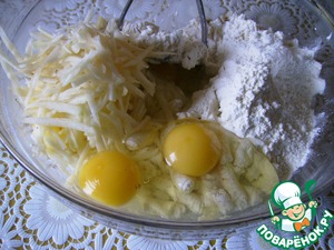 Добавить муку, яйца, тёртое яблоко и перемешать.
