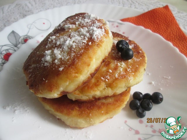 У меня не всегда получались сырники, может, от творога зависит или настроения... Но после этого рецепта, который нашла в журнале, мои сырнички превосходны. Попробуйте их сделать по-разному... Можно печь на сковороде и запекать в духовке. Надеюсь, вы оцените их необычный вкус. Итак, у меня это рецепт-дебют.