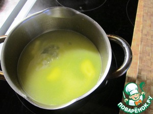 Поставить воду на огонь, всыпать соль. Когда вода начнет закипать, положить масло до его расплавления.