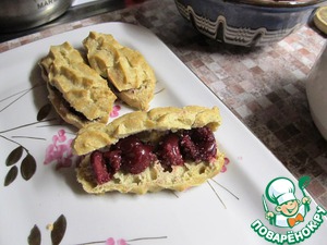 Готовые эклерчики разрезаем вдоль и кладем внутрь вишню. -