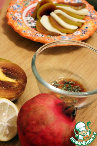 Рецепт «Салат с хурмой, моцареллой и гранатом»: