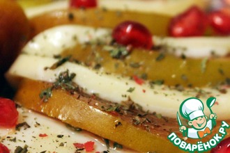 Несмотря на салатную заправку и сыр, я бы сказала, что это десерт. Необычно! Вкусно!