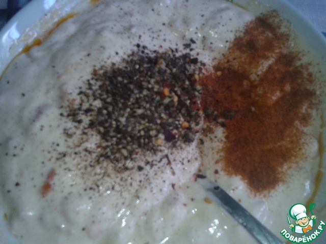 Смешиваем сметану с томатной пережаркой и горчицей.