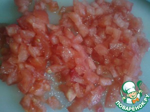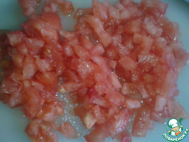 Помидор очистить от кожицы и семян, нарезать кубиками.