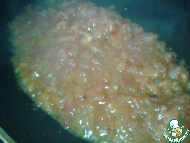 Добавляем черный и красный перец, паприку, соль. Выливаем смесь в сковороду, перемешиваем, накрываем крышкой, тушим 30 мин. За 5 мин до готовности добавляем 100 мл вина, крышку не закрываем, перемешиваем хорошенько и через 5 мин снимаем с огня.