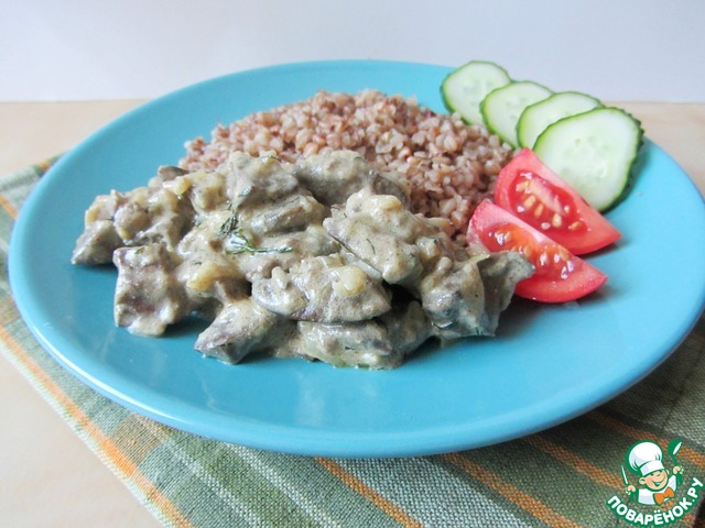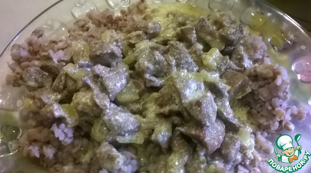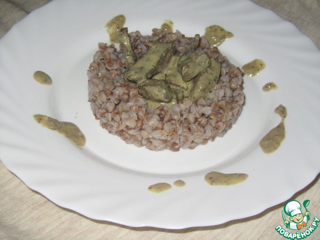 Печень в соусе, да с гречневой кашей, это очень вкусно!!!