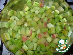 Ревень нарезать на кусочки и, добавив 3 ст. л. воды, потушить около 2 минут, снять с огня.