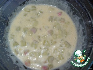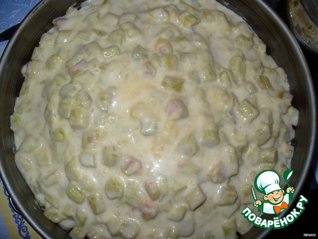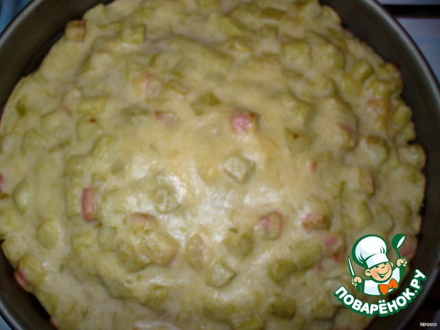 Сливочно-ревеневую массу выложить на корж и выпекать еще 25 минут.