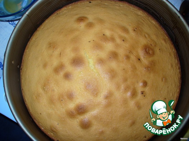 Достать из духовки корж и снизить температуру в духовке до 150 градусов.