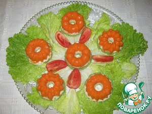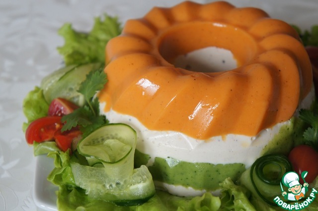 Застывшее желе вынимаем из форм и подаем. Такая закуска может украсить любой праздничный стол. Она не только полезна, но и красива.
