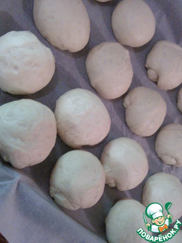 Готовое тесто формируем в любую форму, у меня это просто булочка. Выкладываем на противень, и оставляем еще минут на 30-40 для подъема. -