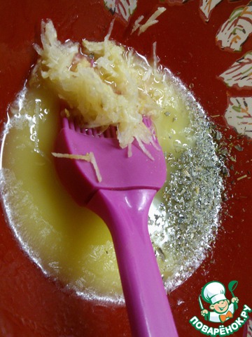 Смешаем тертый чеснок, оливковое масло и орегано. -