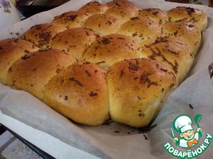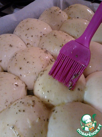 Подошедшие булочки мы обильно смажем соусом. И отправляем в разогретую до 200 градусов духовку на 15-20 минут.