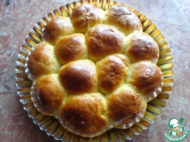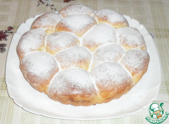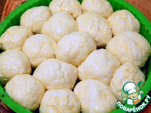 Хорошо защипываем, формируем шарик-булочку (собственно в таком виде можно и оставить, просто будет не пирог, а булочки) и укладываем в форму.