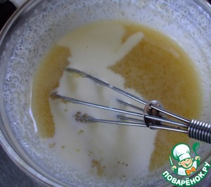 Горячие сливки медленно вливаем в карамель, перемешиваем до однородности. Мне понадобилось время, чтобы растворить всю карамель в сливках –т. е. –варим на небольшом огне смесь до полной однородности, постоянно помешивая.