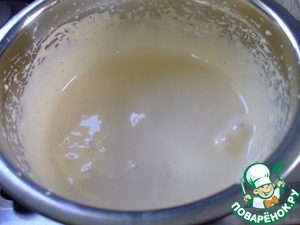 Пока смесь остужается… Смешать 50 гр сахара, 30 мл воды и 20 гр сиропа глюкозы в маленькой кастрюльке и поставить на средний огонь. Довести до кипения и затем –до 118 градусов, поварив еще несколько минут. Сироп должен стать довольно густым.