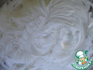 Взбить 200 мл сливок до мягких пиков. Накрыть пищевой пленкой и поставить в холодильник, до надобности.