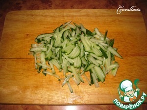 Огурец помыть и нарезать тонкой соломкой.