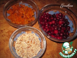 Ингредиенты для «Кексы с клюквой, курагой и миндальными орехами»: