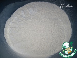 Смешать просеянную муку, разрыхлитель теста и щепотку соли.