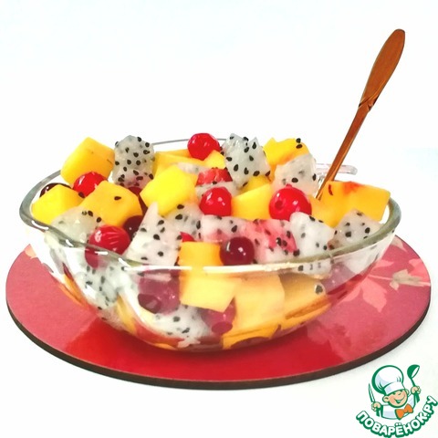 Мне достались прекрасные экзотические фрукты манго и питахайя, и я не могла себе позволить просто скушать их. Это слишком скучно )))