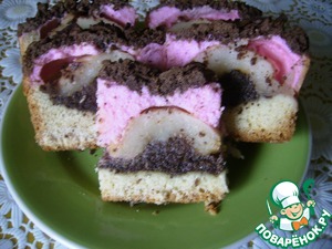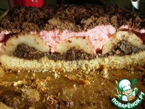 Я потом вычитала, что белки при 100" выпекать надо. Так я и не придумала, как с пирогом поступить, песочное тесто то при 170- 180 выпекать надо...Вот такая у меня Санта Барбара получилась, но ооочень хочется, чтоб получилось