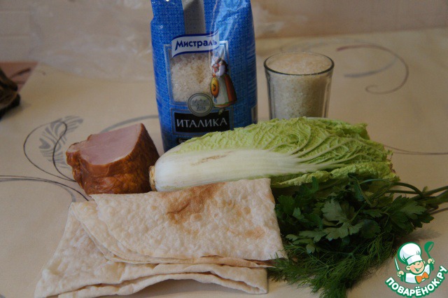 Ингредиенты для «Закусочный рулет из риса с ветчиной»: