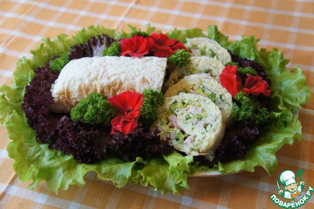 Рецепт «Закусочный рулет из риса с ветчиной»: