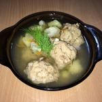 При помощи чайной ложки набирать печеночную массу и мокрыми руками формировать небольшие продолговатые кнели. Опускать в слабо кипящий суп.